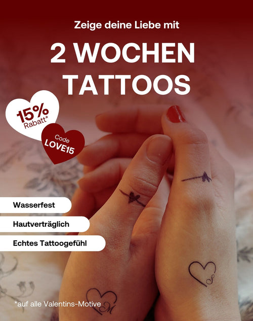 Sichere Dir 15% Rabatt auf alle Valentinstags Tattoos mit dem Code LOVE15